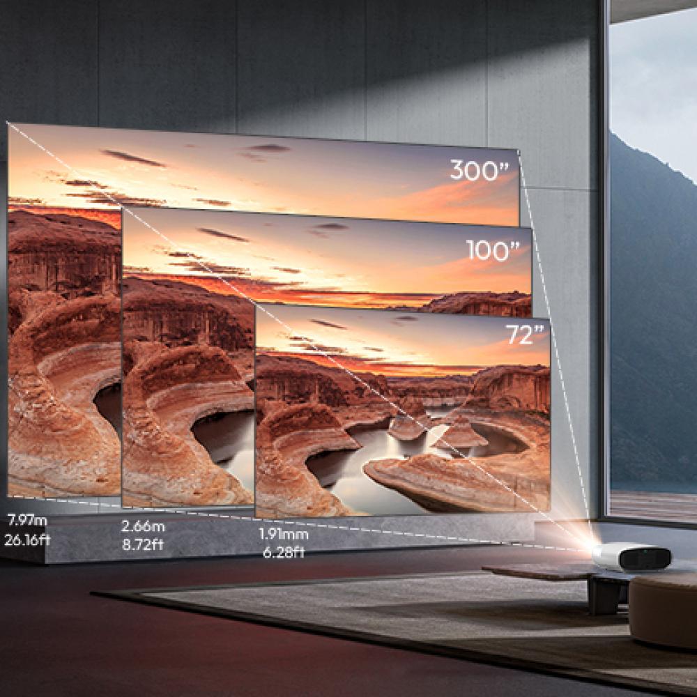 - شاشة عرض تصل حتى 300 بوصة بألوان مشبعة وتفاصيل دقيقة